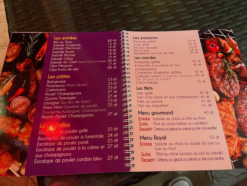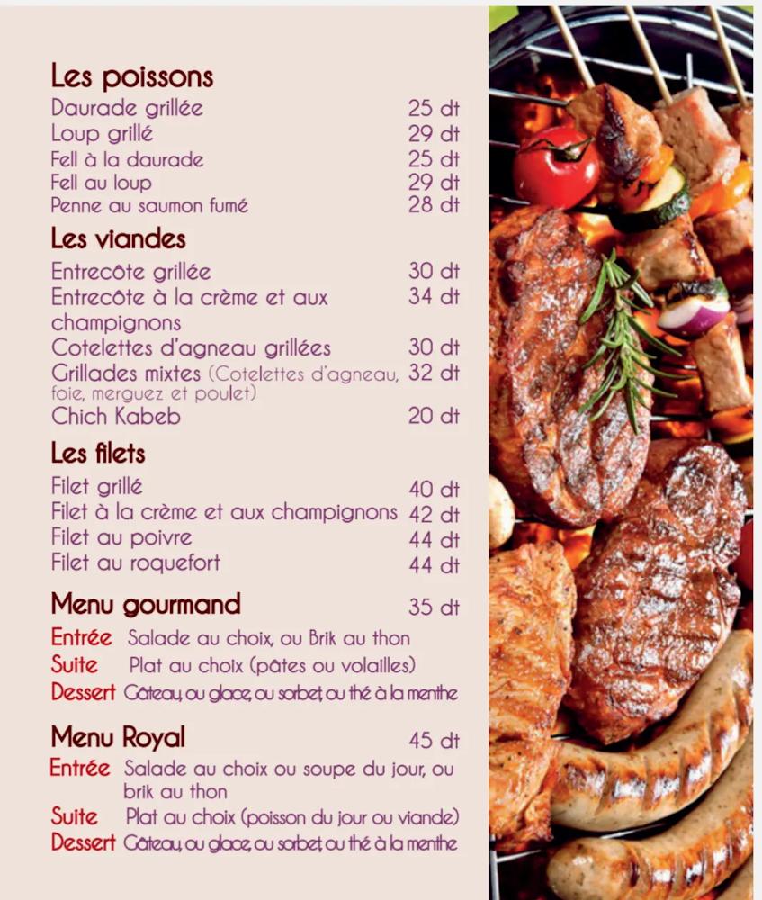 The restaurant also serves a variety of seafood and grilled dishes, maintaining a fresh approach with ingredients and recipes. Quick bites like sandwiches and salads provide excellent options for a fast lunch, while larger plates ensure satisfying meals for dining in. Desserts are equally enticing, with an array of pastries and cakes awaiting to conclude any meal on a sweet note. Despite the wide-ranging menu, prices remain approachable, with meals generally falling under TND 40.
